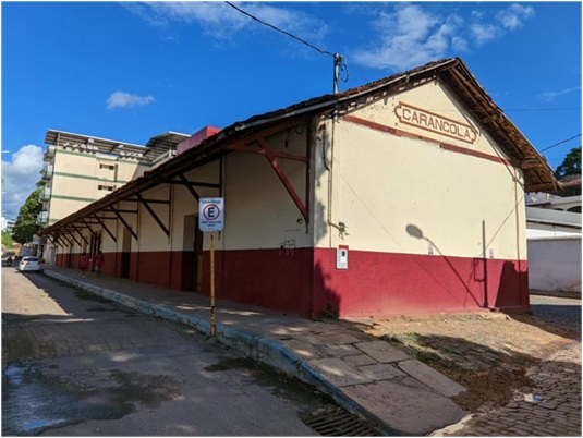 A antiga Estação funcionaria como ponto de embarque e desembarque de passageiros e cargas até 1938, quando é inaugurada outra edificação para sediar o embarque e desembarque de passageiros. A construção desse novo prédio, atualmente funcionando como Estação Rodoviária, exemplifica bem não só a importância do município, mas também o do transporte ferroviário para a região, ainda na primeira metade do século XX. A primeira edificação foi ampliada na década de vinte, chegando a embarcar cerca de cem mil sacas de café em 1928. Em construção horizontal a Estação Ferroviária tem em sua fachada lateral esquerda a identificação da cidade “Carangola”, estrutura em tijolo dobrado, portas laterais largas, esquadrias e molduras em madeira, sua cobertura é composta por telhas francesas distribuídas em telhado de duas águas com cumeeiras paralelas à rua. A preservação é fundamental para a salvaguarda da memória carangolense. Foi tombada em 8 de junho de 2000, pelo Decreto n.º 2.528/2000. Está localizada na Rua Antônio Marques – Bairro Triângulo.